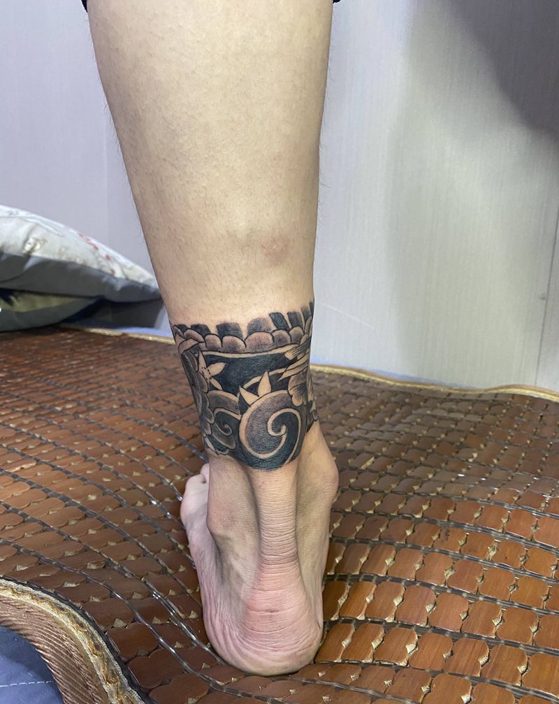 脚环未完成纹身图片_腿部老传统纹身图案