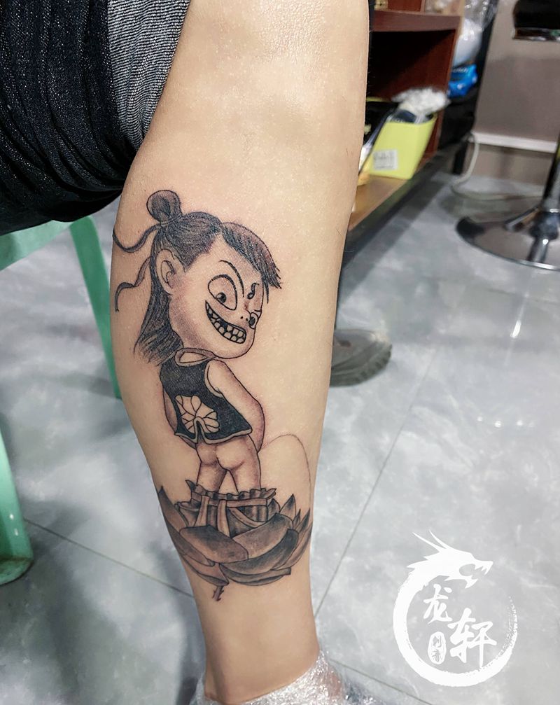 哪吒撒尿图纹身图片_脚部新传统纹身图案
