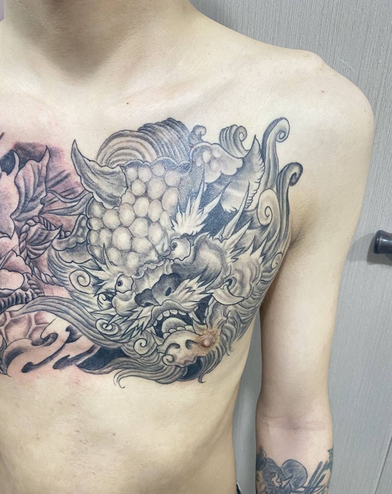 当前位置: 首页 >广东省汕头市纹身店-天龙纹身纹身图案>唐狮纹身图片_胸部新传统纹身图案