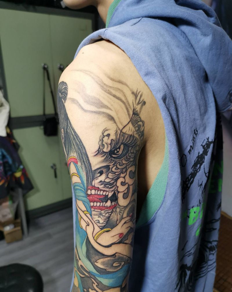 当前位置: 首页 >广东省汕头市纹身店-天龙纹身纹身图案>大臂艺妓纹身图片_手部水彩纹身图案