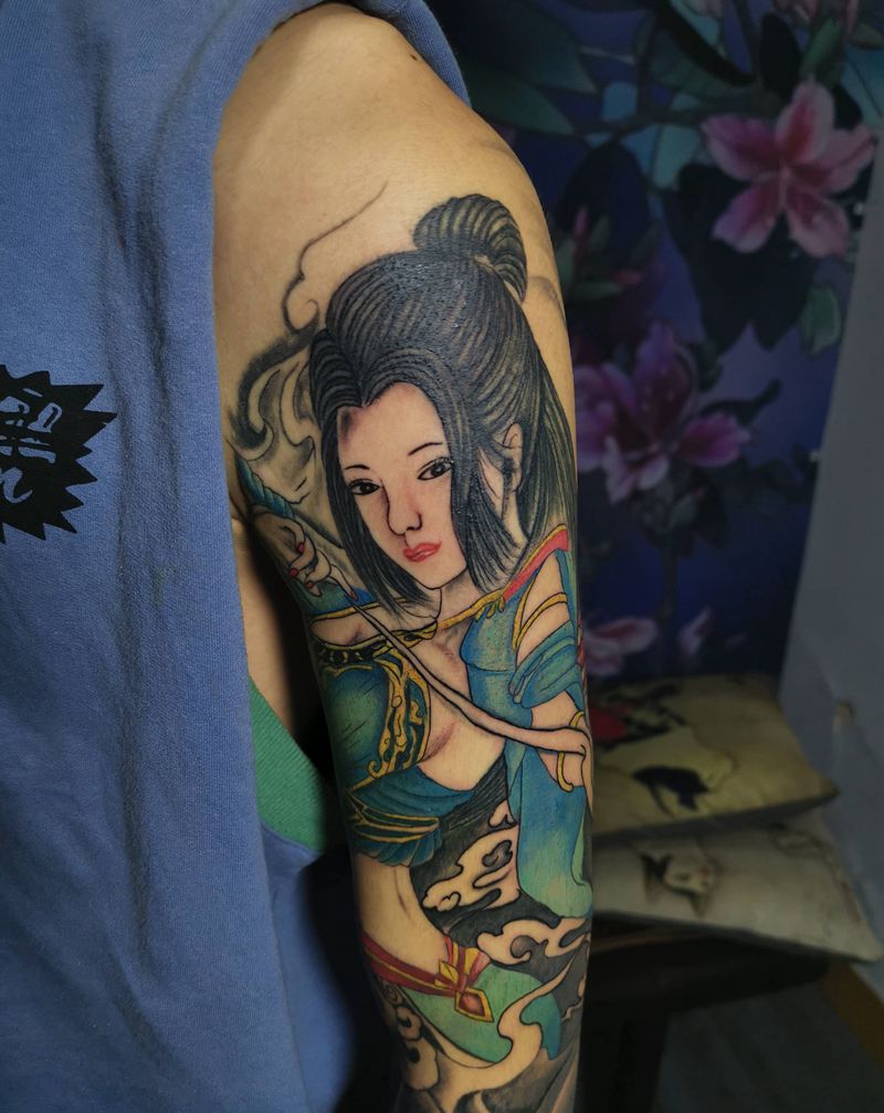 当前位置: 首页 >广东省汕头市纹身店-天龙纹身纹身图案>大臂艺妓纹身图片_手部水彩纹身图案