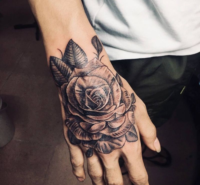 当前位置: 首页 >广东省汕头市纹身店-天龙纹身纹身图案>手背花黑灰色纹身图片