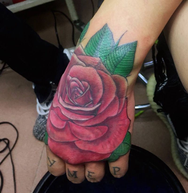 当前位置: 首页 >广东省汕头市纹身店-天龙纹身纹身图案>手背花彩色纹身图片
