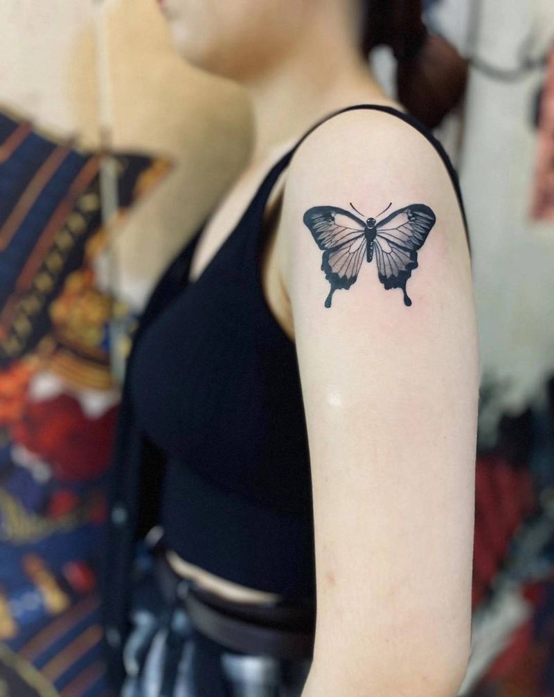当前位置: 首页 >广东省佛山市纹身店-雍和刺青·纹身·皮秒洗纹身纹身图案>蝴蝶纹身图片_手臂纹身图案