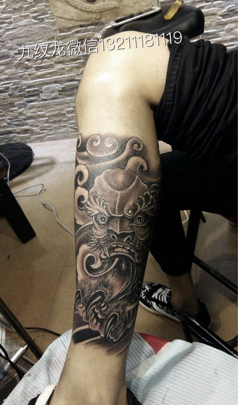 当前位置: 首页 >广东省佛山市纹身店-九纹龙刺青纹身图案>唐狮纹身图片