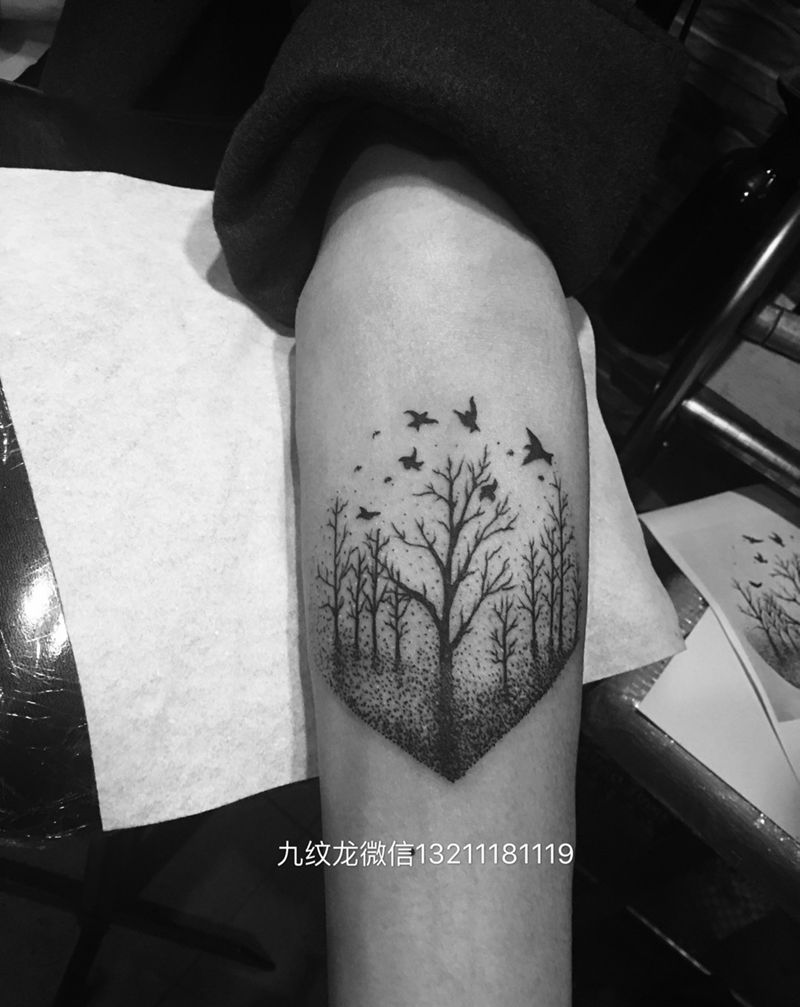 当前位置: 首页 >广东省佛山市纹身店-九纹龙刺青纹身图案>百鸟归林纹身图片