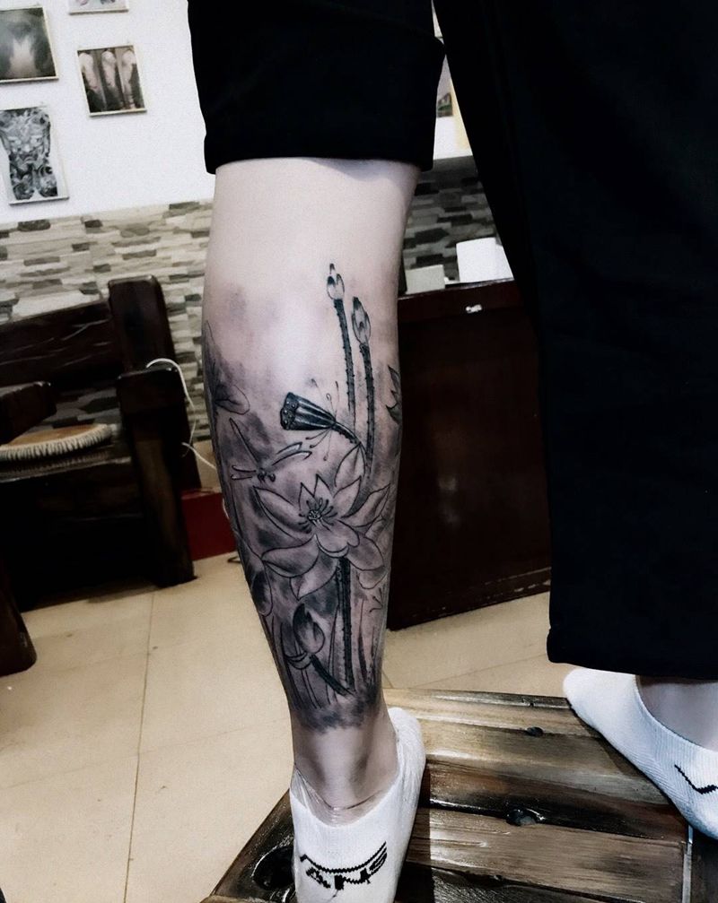 当前位置: 首页 >广东省佛山市纹身店-九纹龙刺青纹身图案>水墨莲花纹身图片