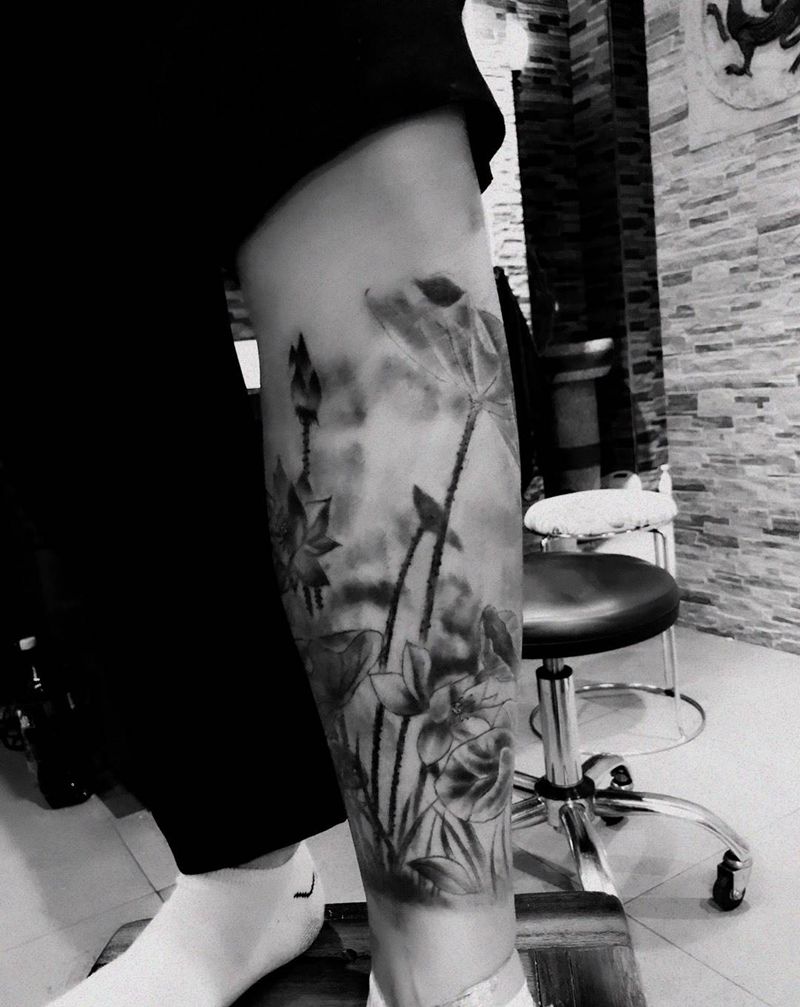 当前位置: 首页 >广东省佛山市纹身店-九纹龙刺青纹身图案>水墨莲花纹身图片