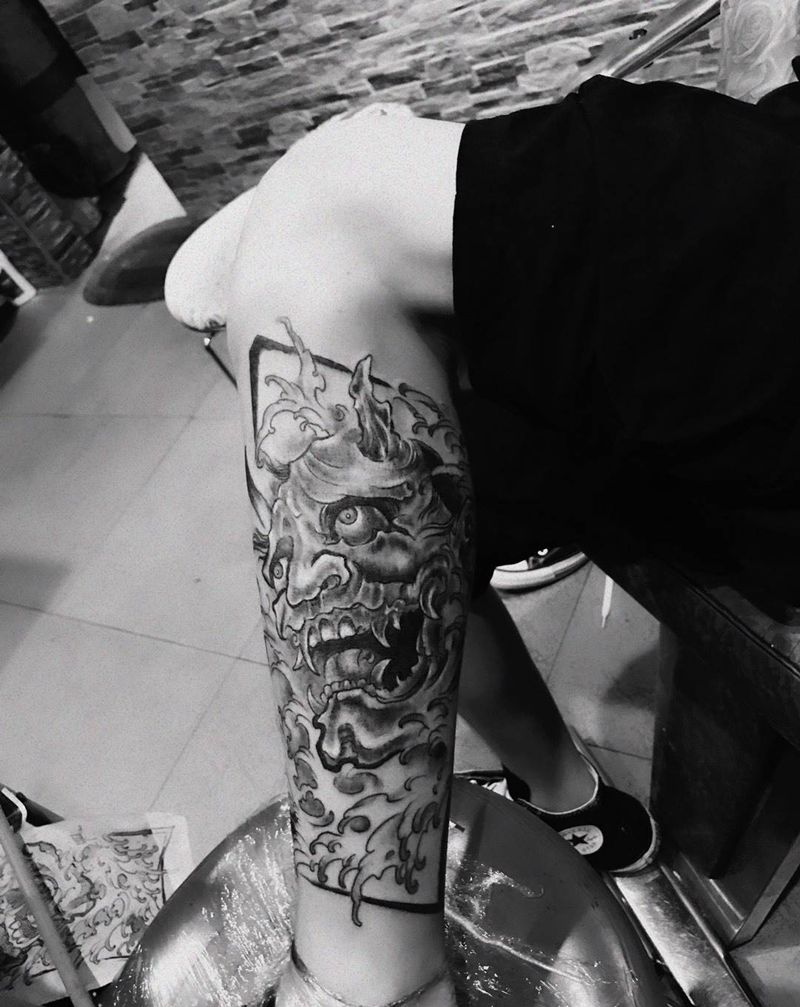 当前位置: 首页 >广东省佛山市纹身店-九纹龙刺青纹身图案>般若半包腿纹身图片