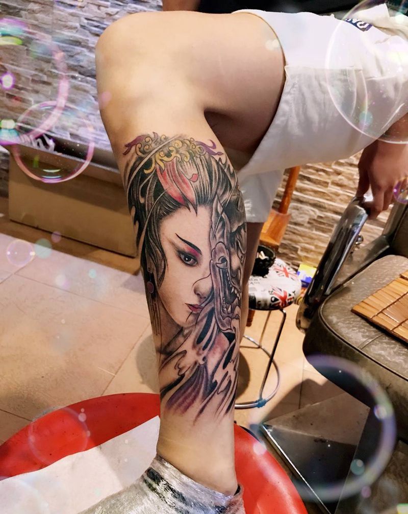 • T网红王老大花腿龙纹身图片_腿部新传统纹身图案