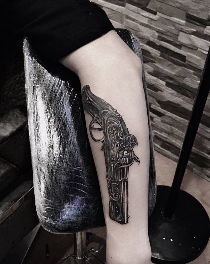 当前位置: 首页 >广东省佛山市纹身店-九纹龙刺青纹身图案>枪纹身图片