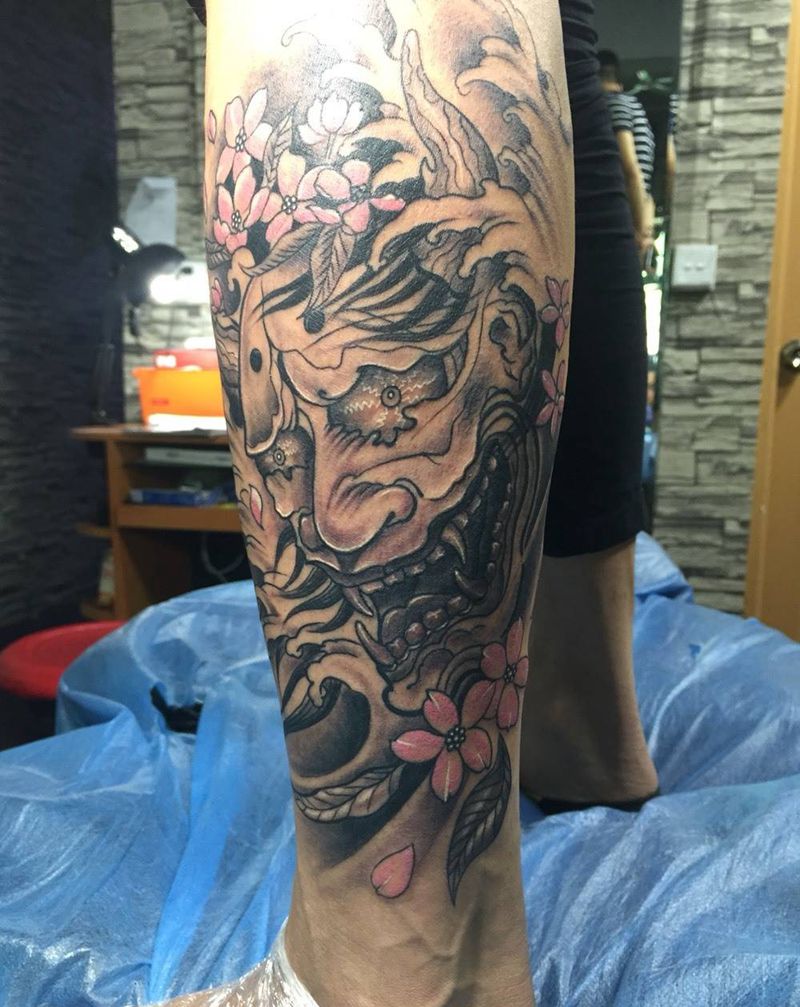 • T网红王老大花腿龙纹身图片_腿部新传统纹身图案