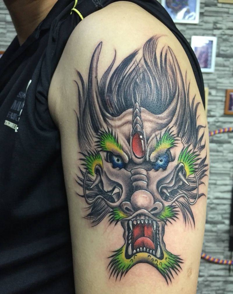 • T网红王老大花腿龙纹身图片_腿部新传统纹身图案