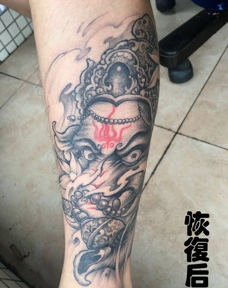 • T网红王老大花腿龙纹身图片_腿部新传统纹身图案