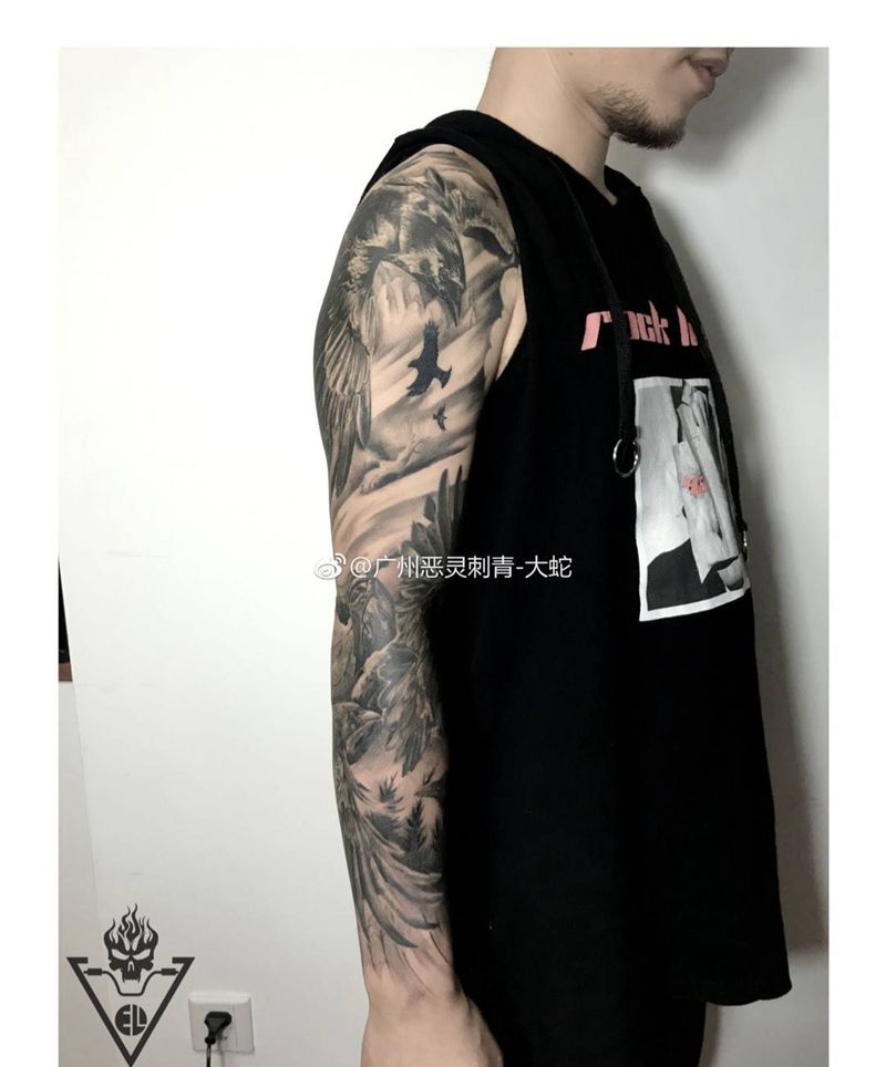当前位置: 首页 >广东省佛山市纹身店-恶灵•TATTOO纹身工作室纹身图案>乌鸦花臂纹身图片_成品纹身图案