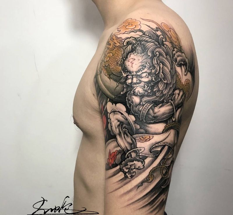 当前位置: 首页 >广东省佛山市纹身店-恶灵•TATTOO纹身工作室纹身图案>风神纹身图片_成品手臂纹身图案