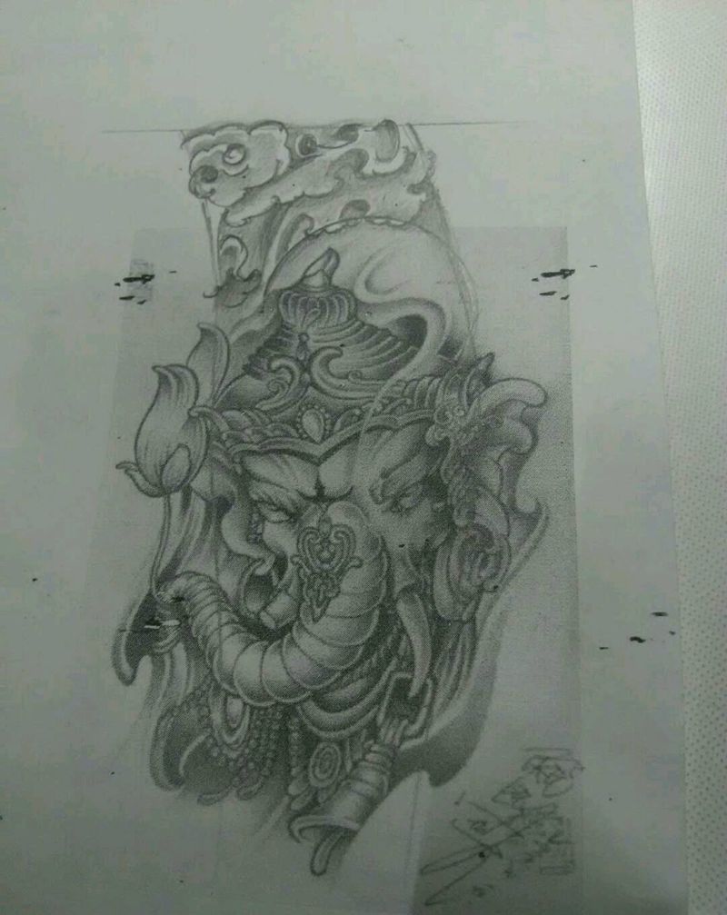当前位置: 首页 >广东省佛山市纹身店-西樵鲤狮虎刺青纹身图案>象神添加纹身图片