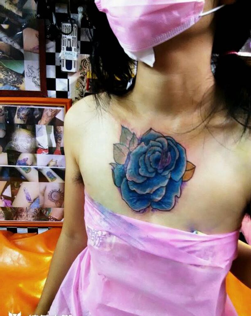 • 女性大花胸纹身_43张霸气漂亮的女性大花胸纹身图案作品