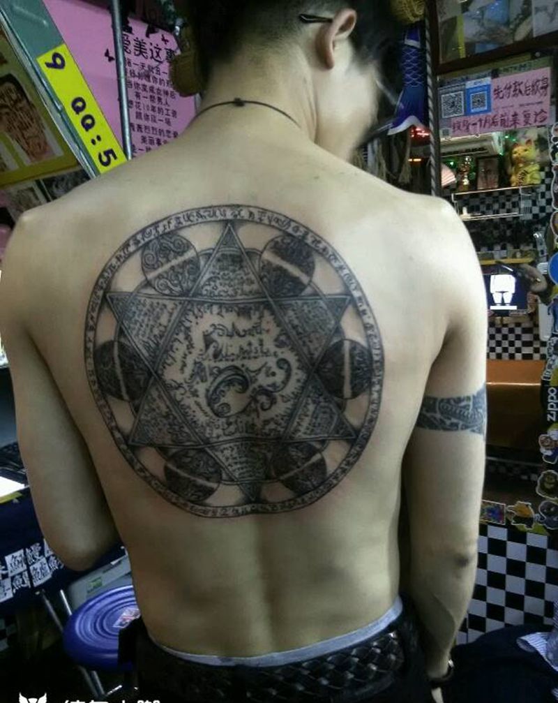 当前位置: 首页 >广东省佛山市纹身店-西樵鲤狮虎刺青纹身图案>大背六芒星纹身图片