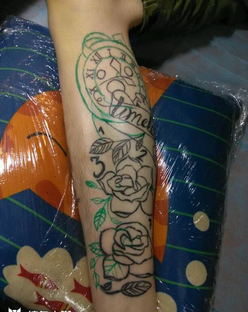 当前位置: 首页 >广东省佛山市纹身店-西樵鲤狮虎刺青纹身图案>玫瑰时钟拯救不开心纹身图片