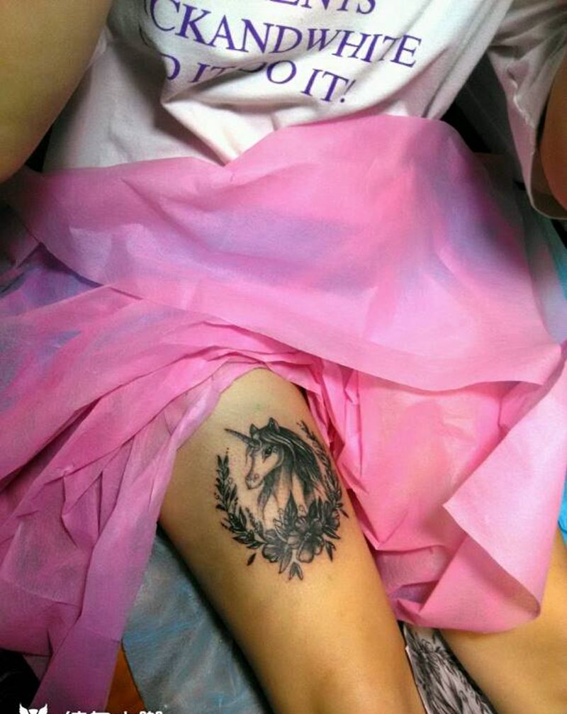 当前位置: 首页 >广东省佛山市纹身店-西樵鲤狮虎刺青纹身图案>独角兽纹身图片
