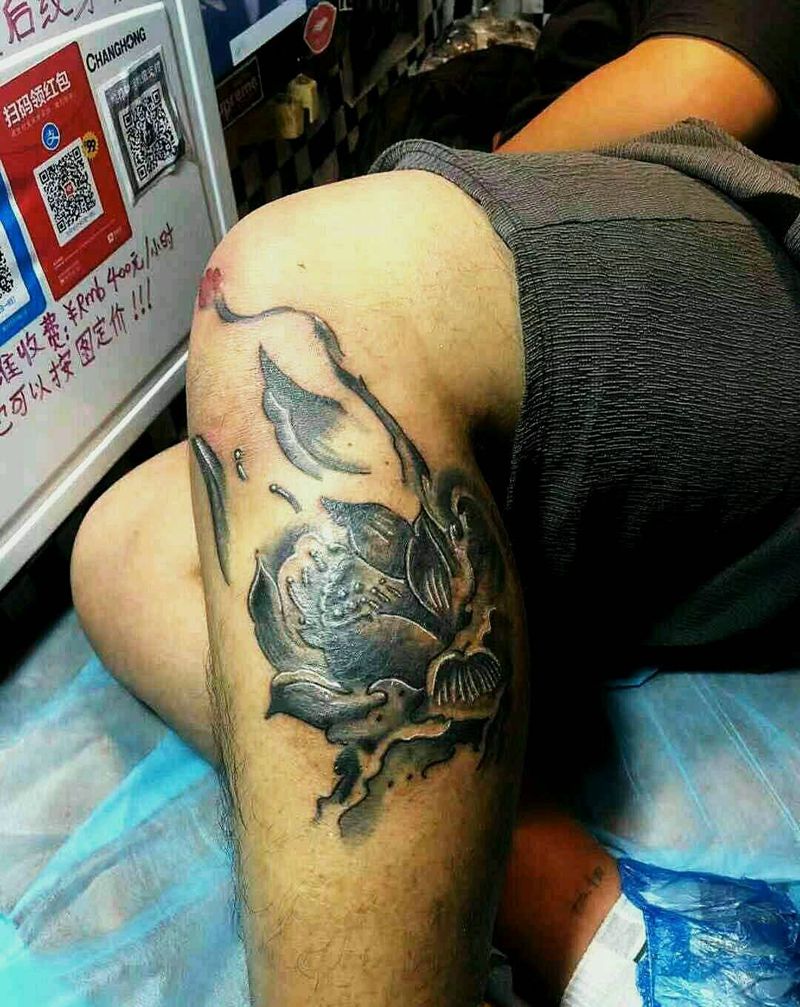 当前位置: 首页 >广东省佛山市纹身店-西樵鲤狮虎刺青纹身图案>水墨莲花纹身图片
