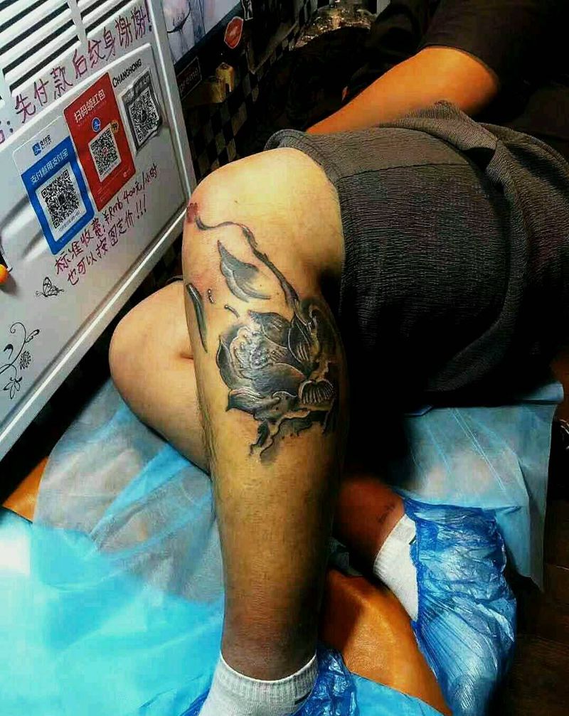 当前位置: 首页 >广东省佛山市纹身店-西樵鲤狮虎刺青纹身图案>水墨莲花纹身图片