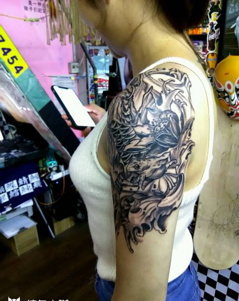 当前位置: 首页 >广东省佛山市纹身店-西樵鲤狮虎刺青纹身图案>新传统鱼纹身图片_手臂纹身图案