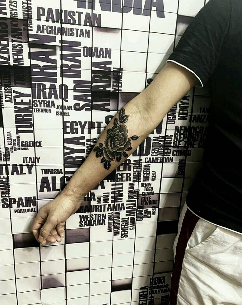当前位置: 首页 >广东省佛山市纹身店-西樵鲤狮虎刺青纹身图案>黑灰玫瑰纹身图片_手臂纹身图案