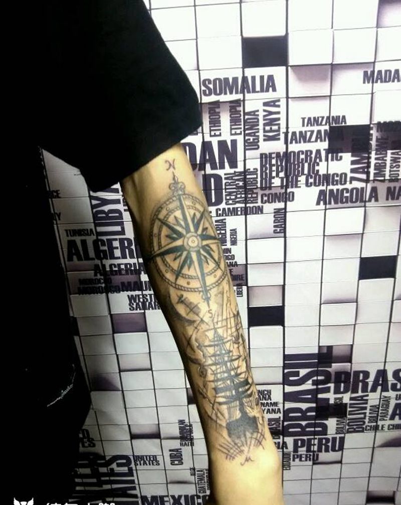 当前位置: 首页 >广东省佛山市纹身店-西樵鲤狮虎刺青纹身图案>小臂指南针纹身图片_手臂纹身图案