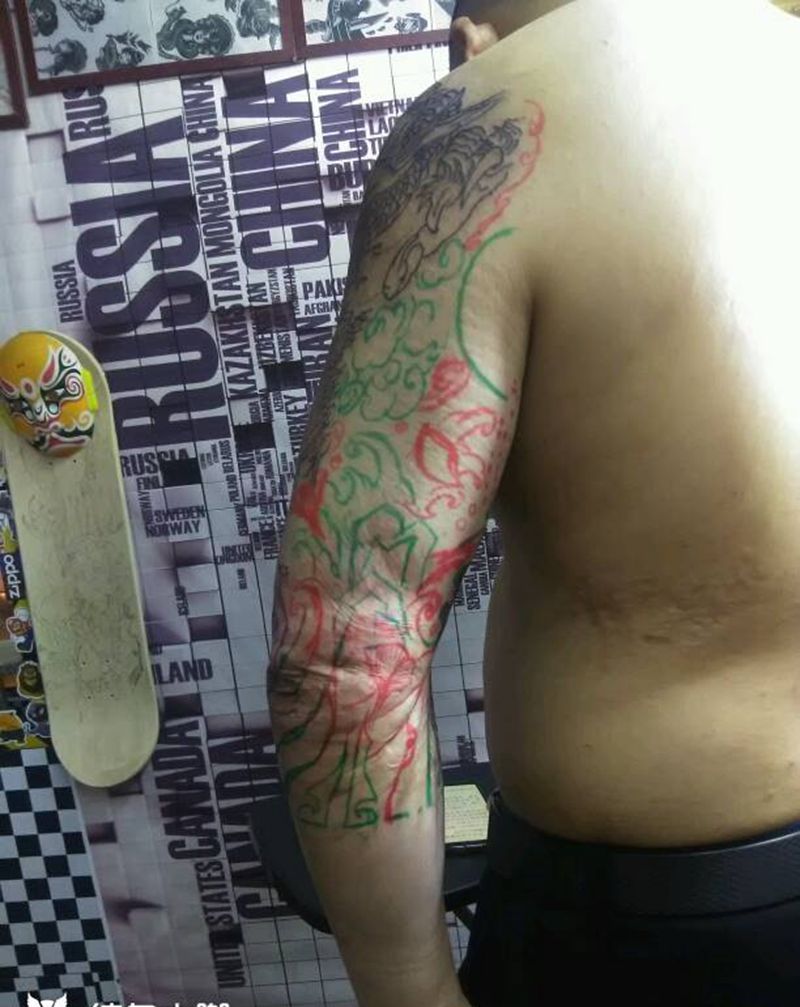 当前位置: 首页 >广东省佛山市纹身店-西樵鲤狮虎刺青纹身图案>疤痕遮盖未完成待续纹身图片_手臂纹身图案