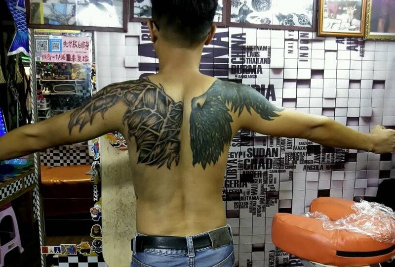 当前位置: 首页 >广东省佛山市纹身店-西樵鲤狮虎刺青纹身图案>翅膀纹身图片_手臂背部纹身图案
