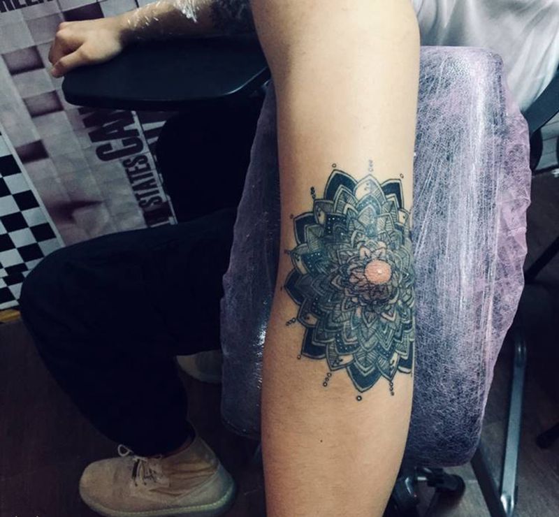 当前位置: 首页 >广东省佛山市纹身店-西樵鲤狮虎刺青纹身图案>迷之繁花纹身图片_手臂纹身图案