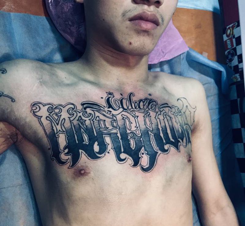 当前位置: 首页 >广东省佛山市纹身店-西樵鲤狮虎刺青纹身图案>客户赶飞机还没完成纹身图片_胸部纹身图案