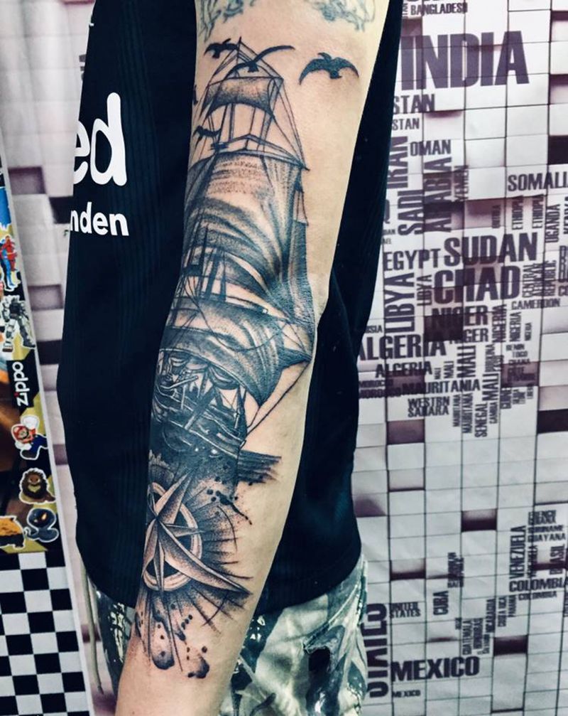 当前位置: 首页 >广东省佛山市纹身店-西樵鲤狮虎刺青纹身图案>帆船纹身图片_手臂纹身图案