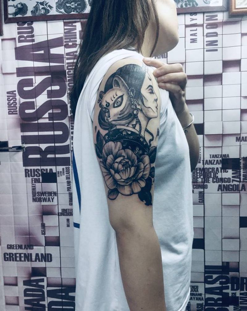 当前位置: 首页 >广东省佛山市纹身店-西樵鲤狮虎刺青纹身图案>艺妓纹身图片_手臂纹身图案
