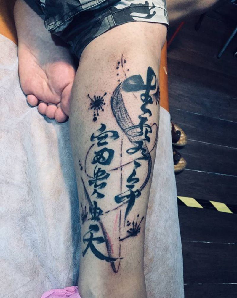 当前位置: 首页 >广东省佛山市纹身店-西樵鲤狮虎刺青纹身图案>书法纹身图片_腿部纹身图案