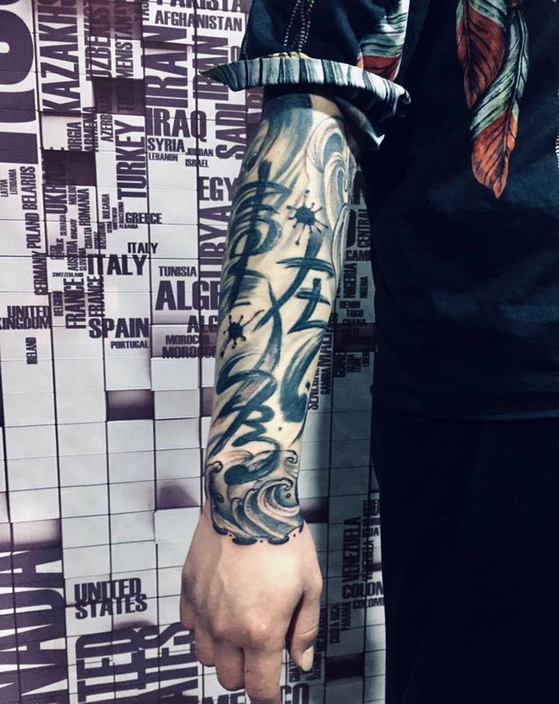 当前位置: 首页 >广东省佛山市纹身店-西樵鲤狮虎刺青纹身图案>旧图在某名店做一个月不到来修改纹身图片_手臂纹身图案