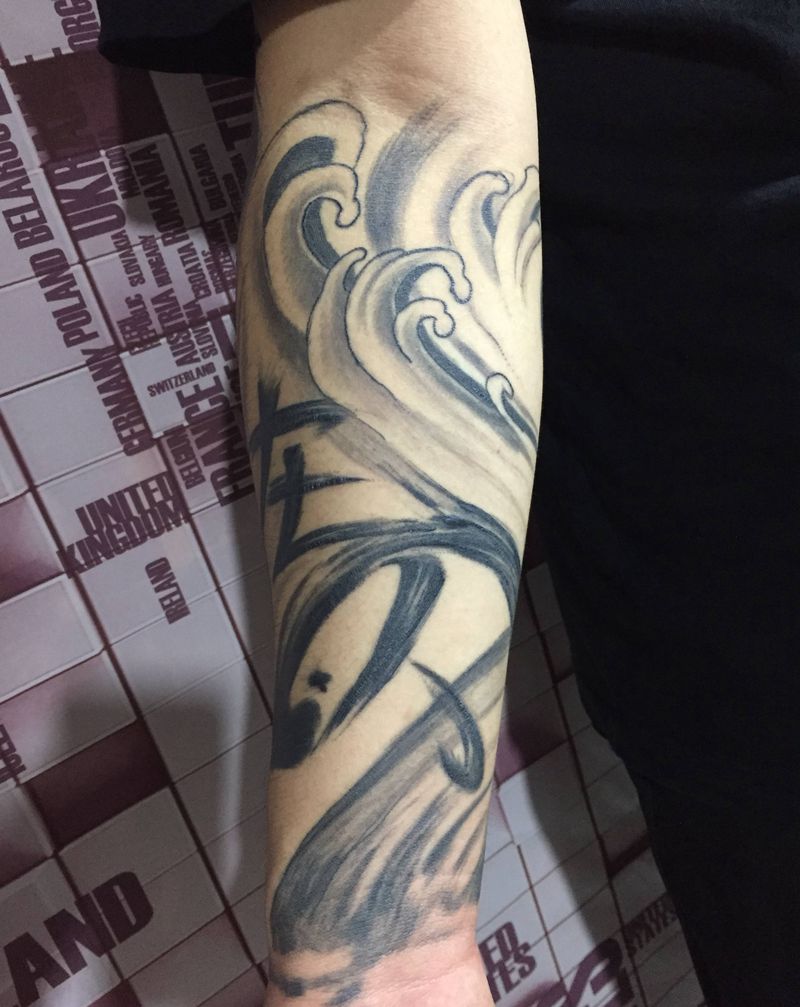 当前位置: 首页 >广东省佛山市纹身店-西樵鲤狮虎刺青纹身图案>旧图在某名店做一个月不到来修改纹身图片_手臂纹身图案