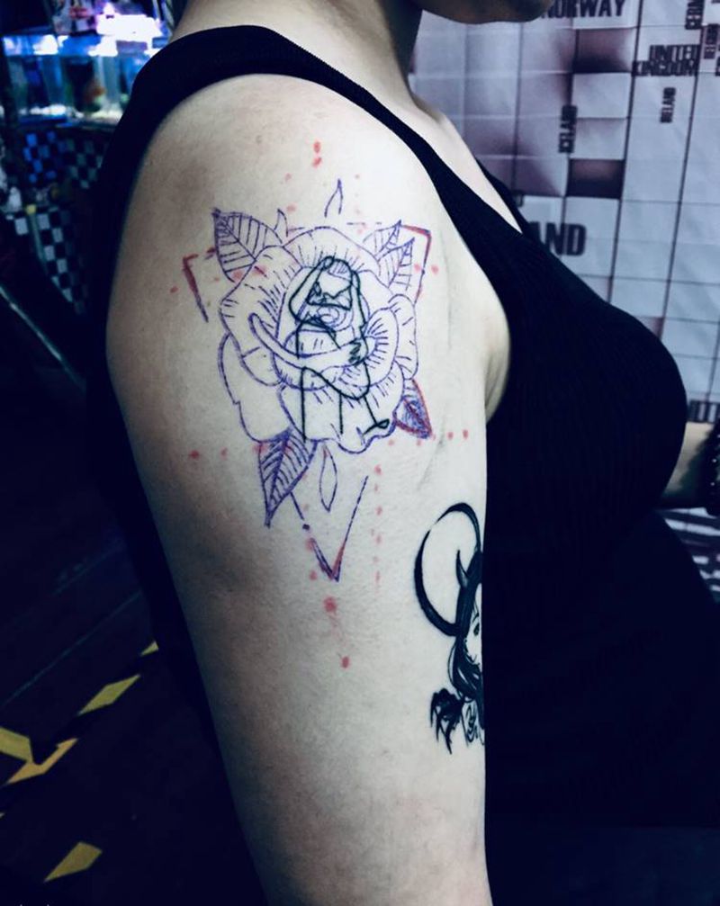 当前位置: 首页 >广东省佛山市纹身店-西樵鲤狮虎刺青纹身图案>大臂花遮盖纹身图片_手臂纹身图案