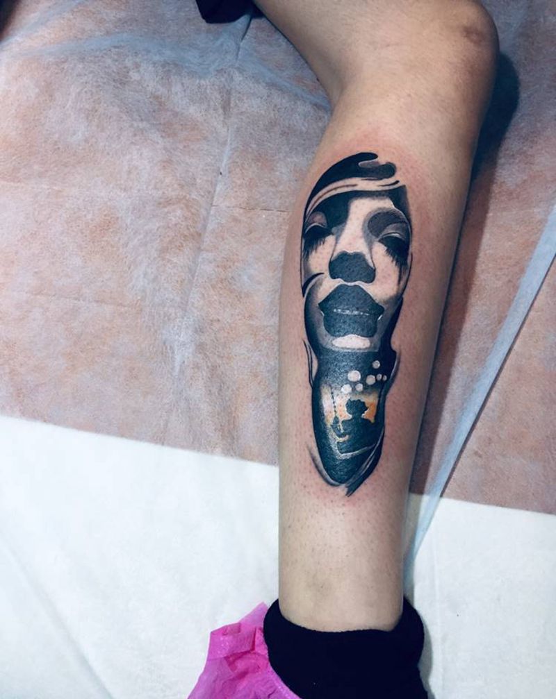 当前位置: 首页 >广东省佛山市纹身店-西樵鲤狮虎刺青纹身图案>欧美人物纹身图片_腿部纹身图案
