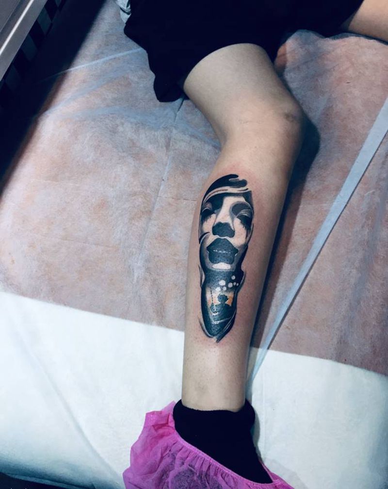 当前位置: 首页 >广东省佛山市纹身店-西樵鲤狮虎刺青纹身图案>欧美人物纹身图片_腿部纹身图案