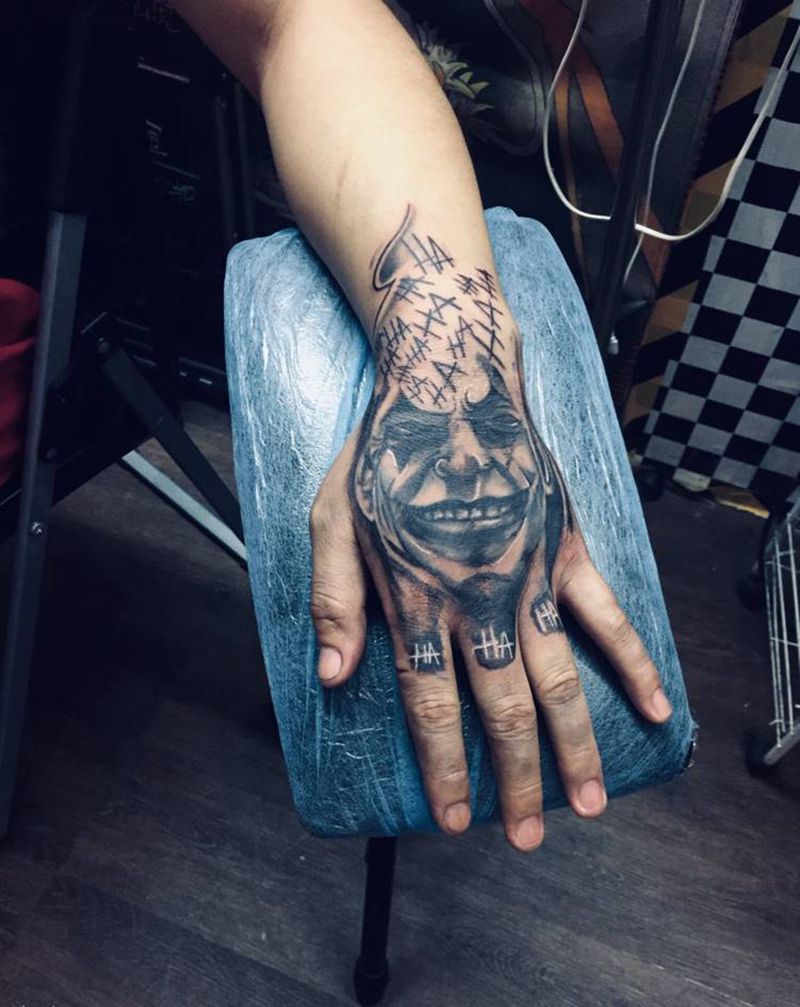 当前位置: 首页 >广东省佛山市纹身店-西樵鲤狮虎刺青纹身图案>小丑纹身图片_手部纹身图案