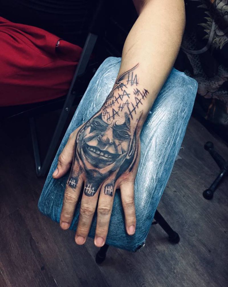 当前位置: 首页 >广东省佛山市纹身店-西樵鲤狮虎刺青纹身图案>小丑纹身图片_手部纹身图案