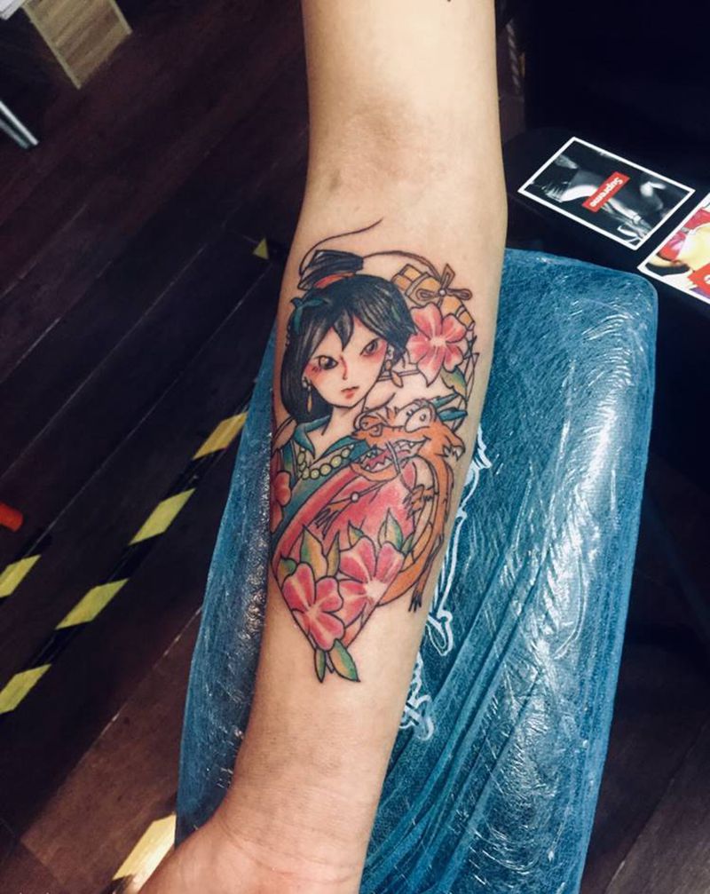 当前位置: 首页 >广东省佛山市纹身店-西樵鲤狮虎刺青纹身图案>花木兰纹身图片_手臂纹身图案