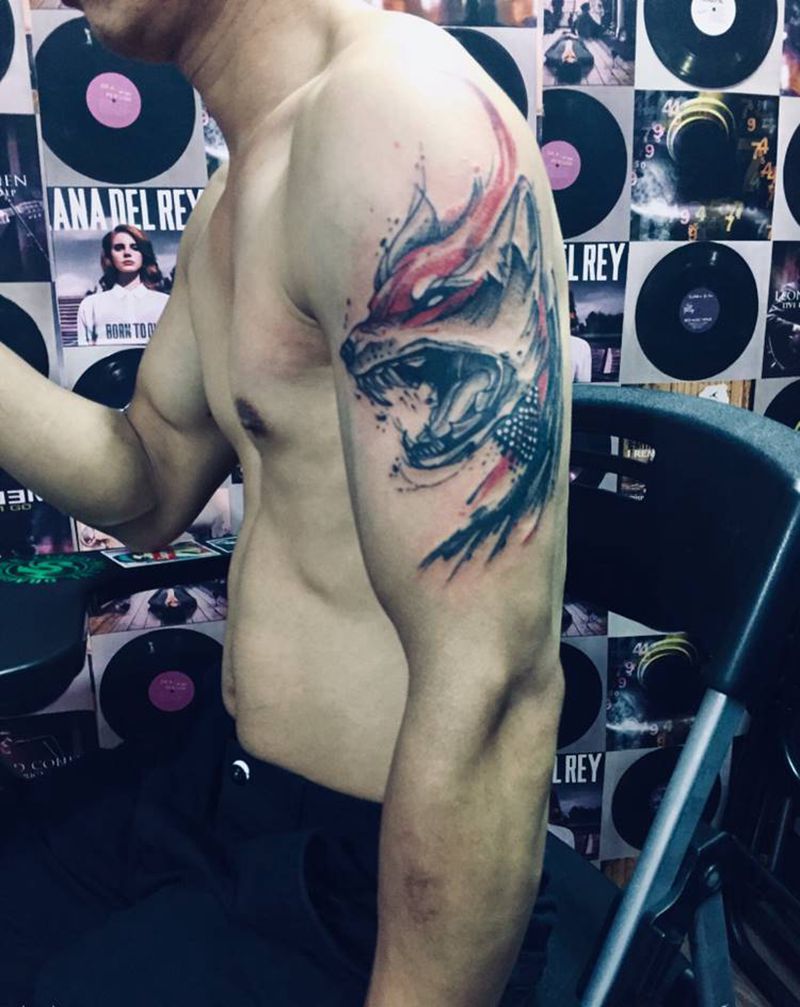 当前位置: 首页 >广东省佛山市纹身店-西樵鲤狮虎刺青纹身图案>狼头纹身图片_手臂纹身图案