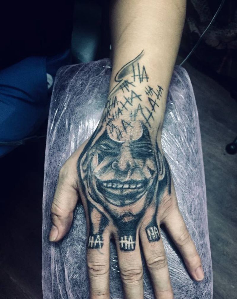 当前位置: 首页 >广东省佛山市纹身店-西樵鲤狮虎刺青纹身图案>小丑纹身图片_手部纹身图案