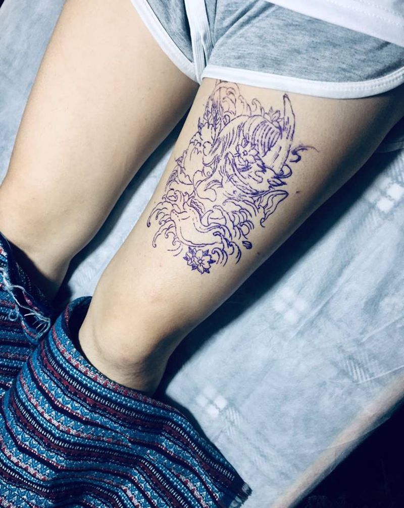当前位置: 首页 >广东省佛山市纹身店-西樵鲤狮虎刺青纹身图案>般若纹身图片_腿部纹身图案