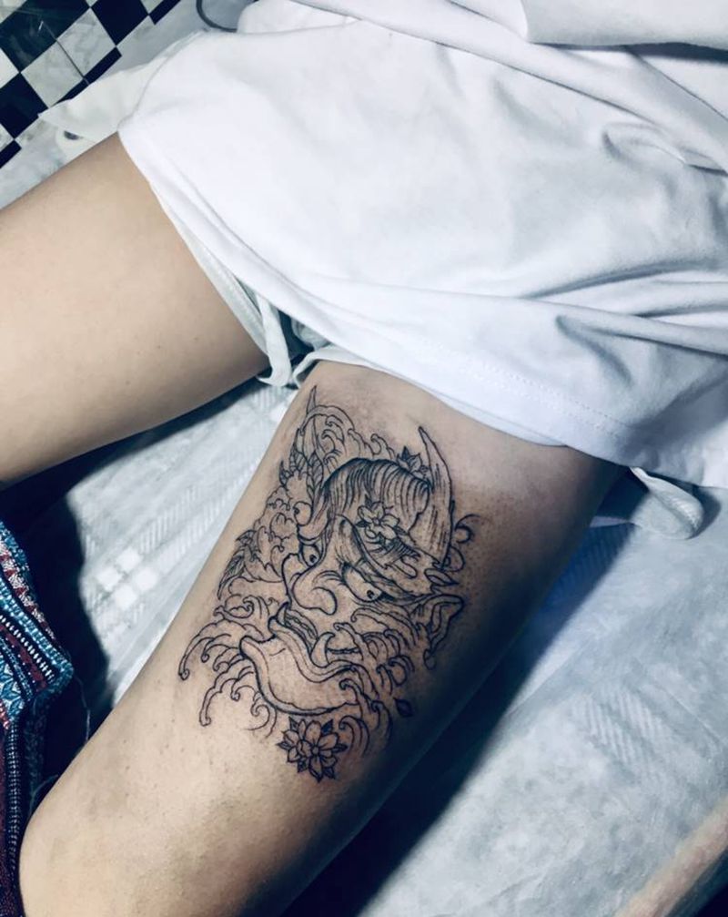 般若纹身图片_腿部纹身图案
