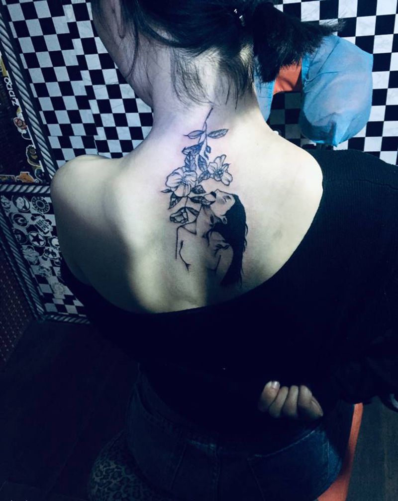 美女纹身图片_背部纹身图案